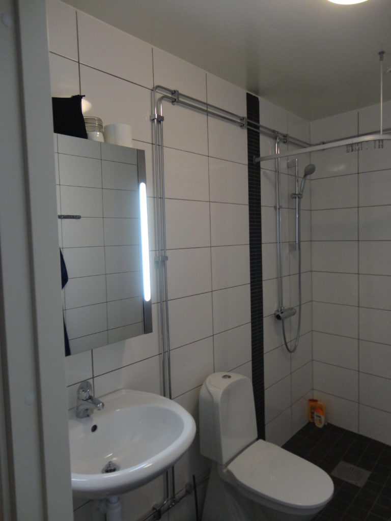 Nytt badrum med italienska kakel samt svart klinker. Förberett för tvätt o tork.