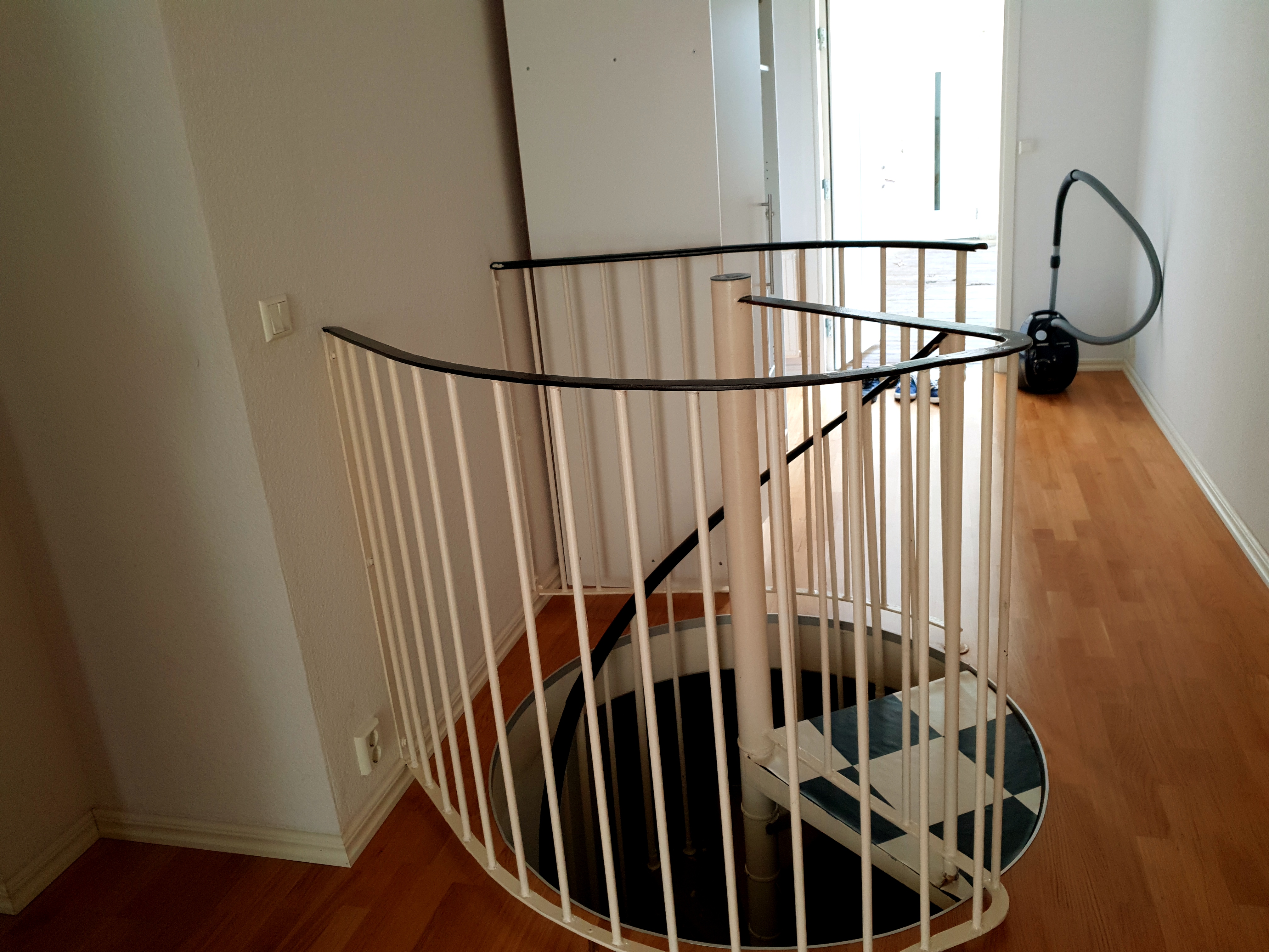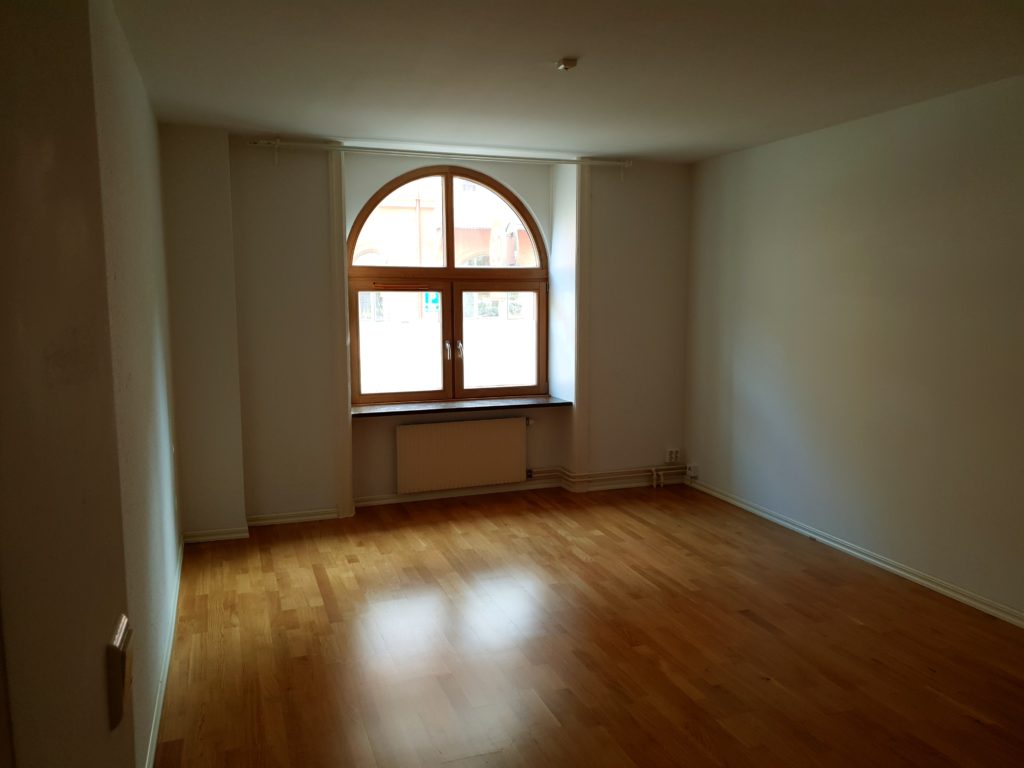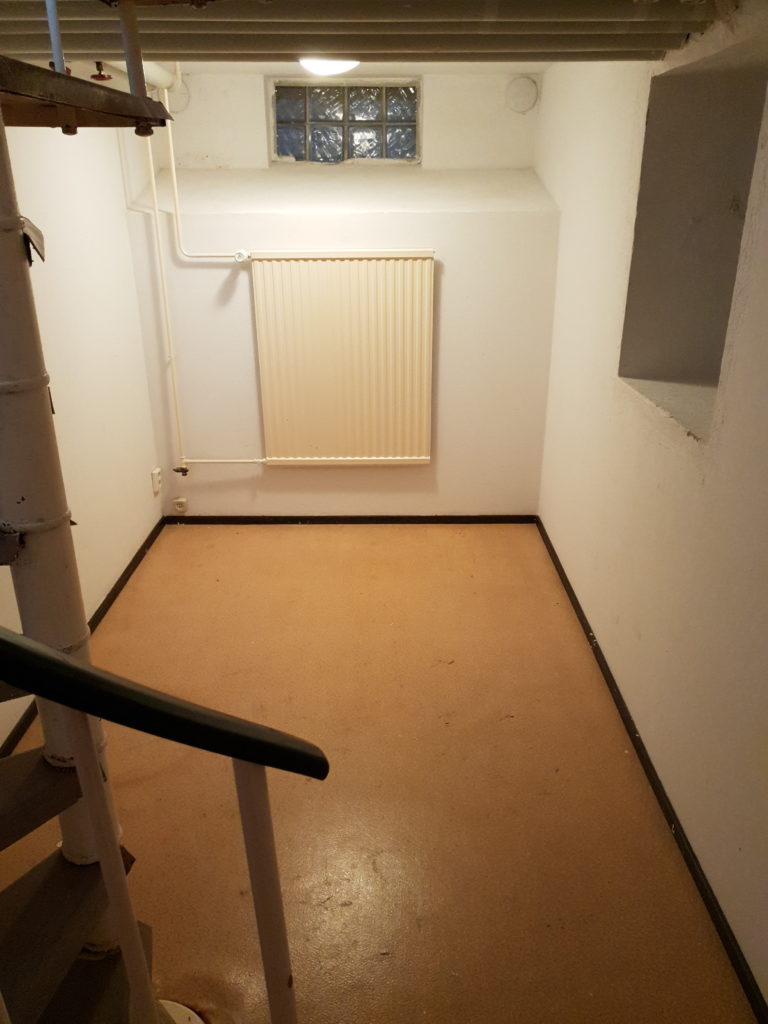 En trappa ned i lägenheten finns ca 15″extra” m2 i fd. bankens gamla arkiv som kan användas som arbetsrum.