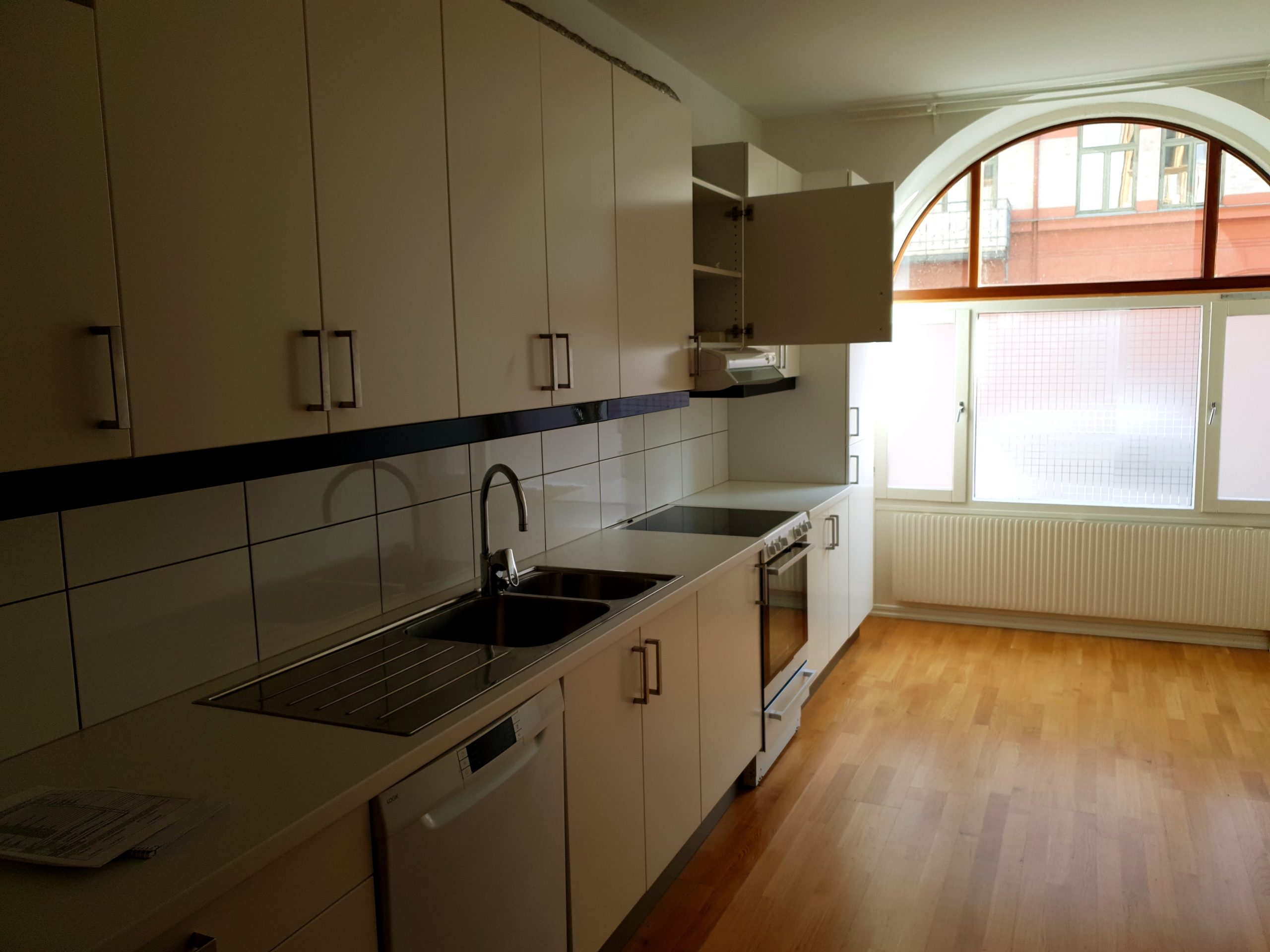 Välplanerat IKEA kök. Spis med glaskeramik häll och varmluftsugn. Förberett för diskmaskin.